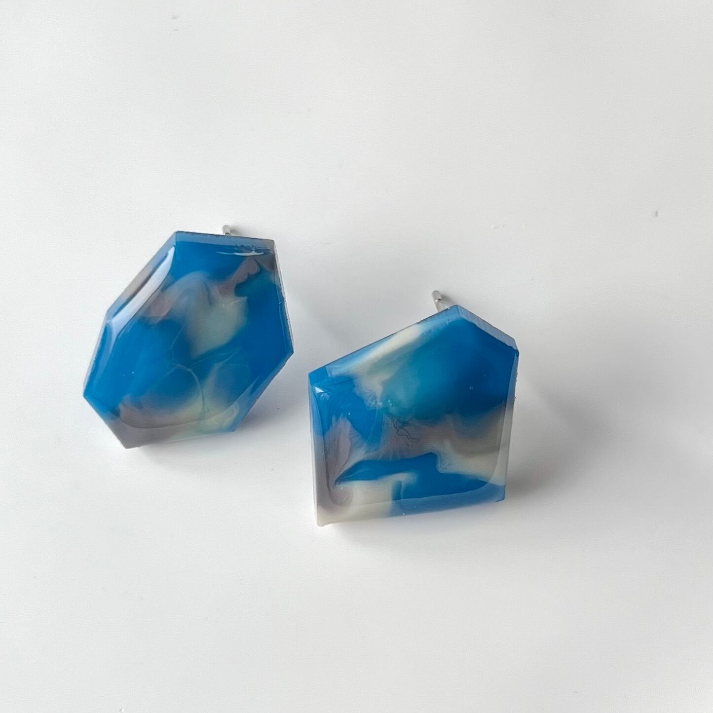 ▱大理石風カクカクピアス大▱ブルーです✧₊⁎❝᷀ົ