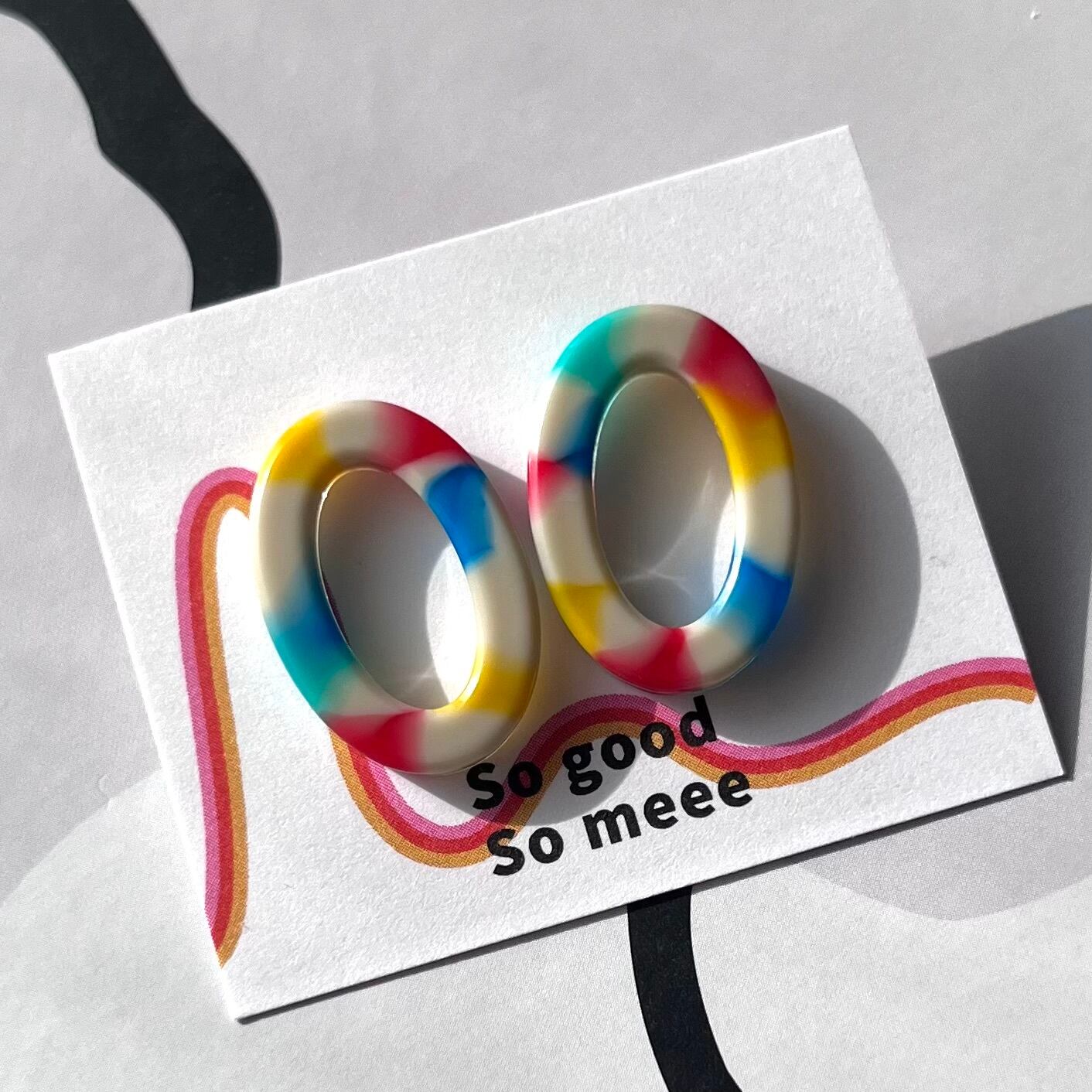 表面はマットなアイボリーにレッド、イエロー、ブルー、グリーンをランダムに ˚✧₊⁎